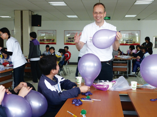 At the same time, Richard found himself deeply involved in Beijing’s colorful science life. As representative of the Institute of Physics (UK) in China, he became friends with David Evans, the Royal Society of Chemistry’s representative here, who in turn introduced him to Helen Boyle. Helen runs the Migrant Children’s Foundation in Beijing and was enthusiastic about teaching the migrant children English, arts and all kinds of other subjects. So David and Richard asked her, “Would you like us to introduce them to science as well?”