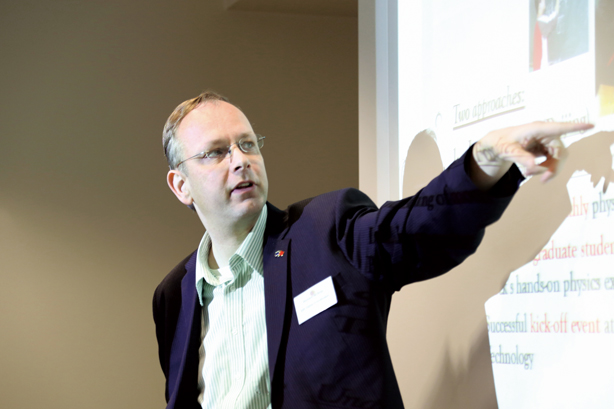Richard de Grijs at the annual Institute of Physics (IOP) representatives' meeting in London in 2012, where he gives an overview of IOP-supported activities in China.