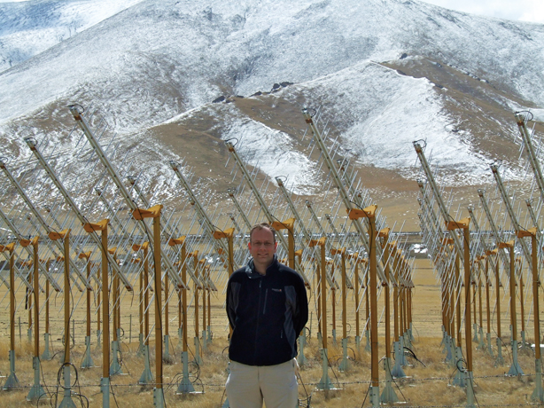 Richard de Grijs visits the Primeval Structure Telescope (also called 21 Centimeter Array or 21CMA) in Xinjiang in 2008. The 21 CMA is a Chinese radio telescope array designed to detect the earliest luminous objects in the universe, including the first stars, supernova explosions and black holes. (Photos provided by Richard de Grijs)